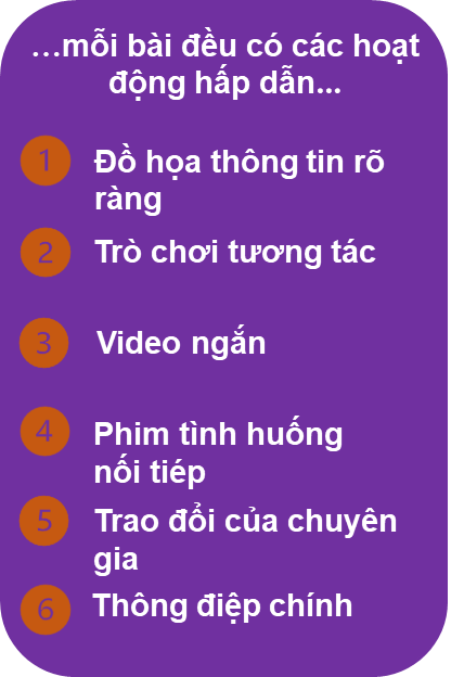 được xây dựng trên website với sáu bài học, mỗi bài 30 phút. Các bài học tập